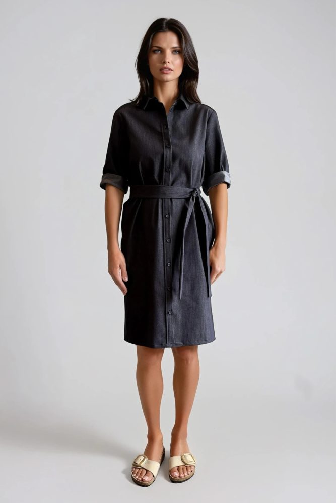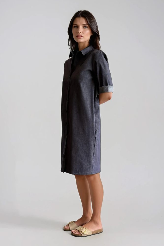 Half sleeve denim shirt dress